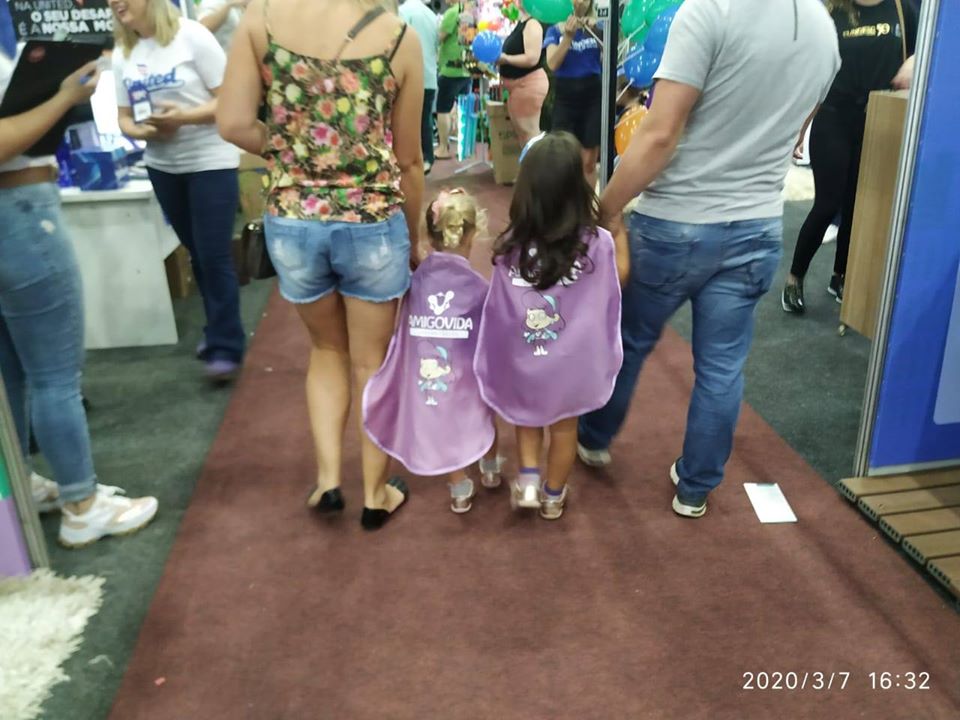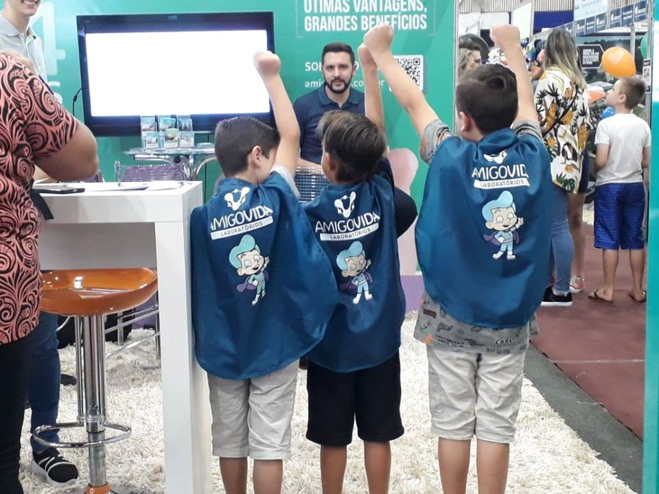 O objetivo era que quem passasse pela feira e visitasse o Amigovida, levasse para casa uma lembrança especial. Por isso, muito antes de irmos para a feira, preparamos diversos brindes para serem entregues, cada um com um significado. A criançada se divertiu e ganhou super poderes usando as capinhas de super-herói dos nossos mascotes Dudu e Vidinha. Para os adultos, preparamos especiarias para acrescentar mais sabor à vida e um mix de oleaginosas, o mix da felicidade.